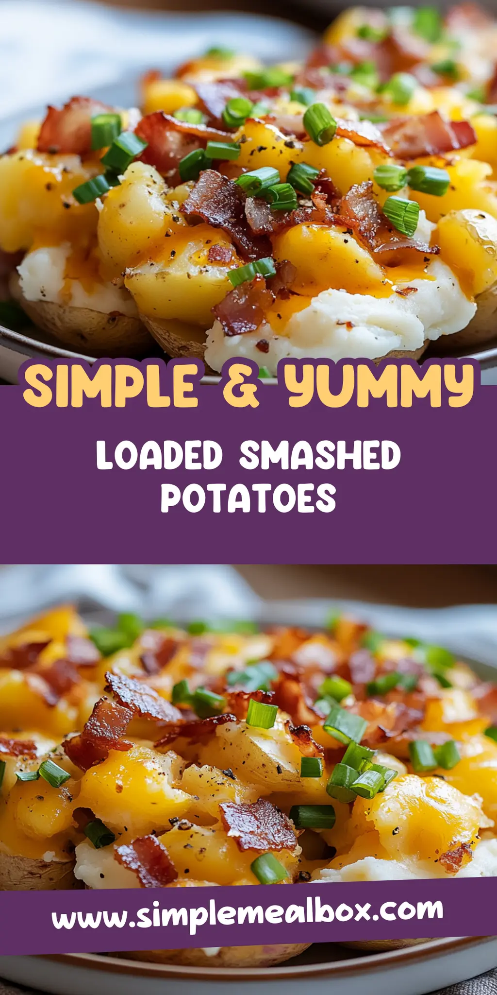 Loaded Smashed Potatoes are a delightful twist on comfort food, featuring creamy mashed potatoes topped with gooey cheese and crispy bacon.